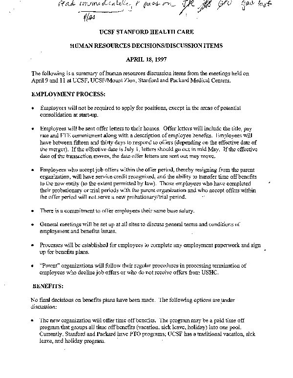 Ucsf Stanford Health Care Human Resources Decisions Discussion Items Calisphere